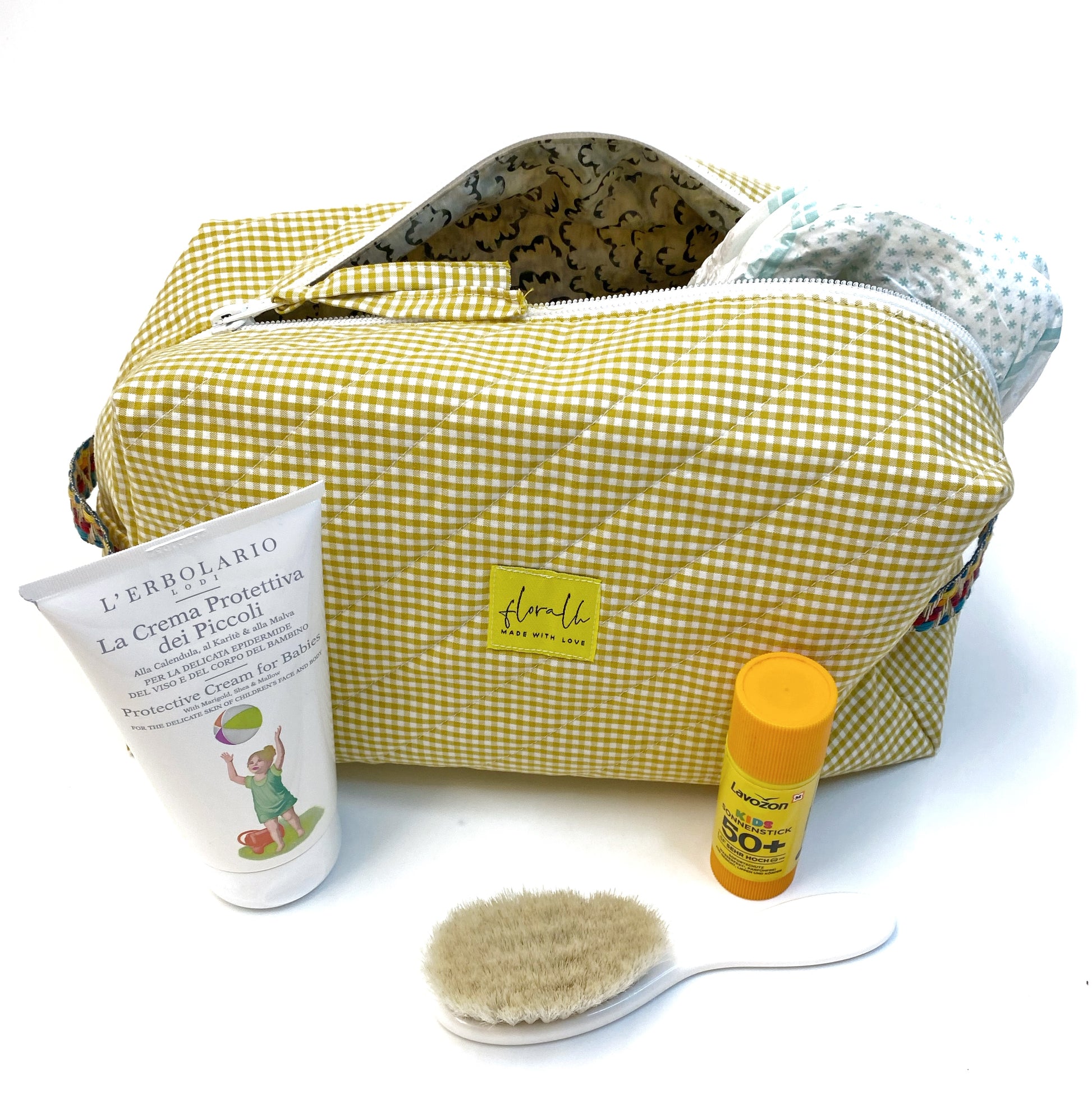 Dieses handgemachte Necessaire wird aus hochwertiger, GOTS- und OEKO-TEX-zertifizierter Bio-Baumwolle gefertigt – innen wie aussen. Die Stoffe stammen aus europäischer Produktion und stehen für Nachhaltigkeit, Qualität und Umweltbewusstsein. Jedes Stück wird in liebevoller Handarbeit hergestellt und ist damit ein echtes Unikat.