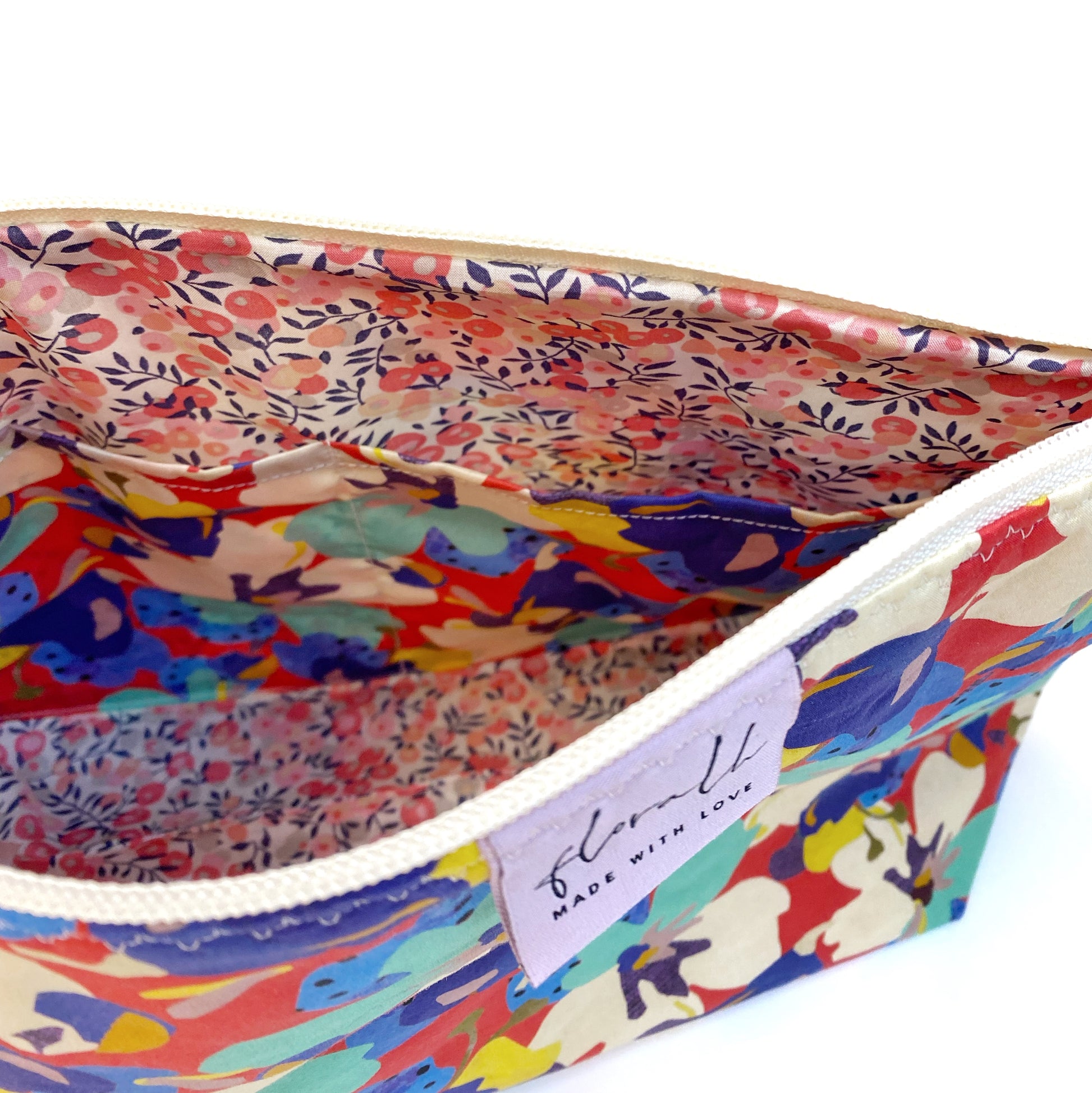 Dieses Necessaire aus feinster Liberty London Baumwolle (innen und aussen) bietet Platz für alles, was unterwegs verstaut werden muss. Falls etwas auslaufen sollte, kann es mühelos in der Waschmaschine gereinigt werden. Ausserdem hat es innen zwei kleine Taschen.